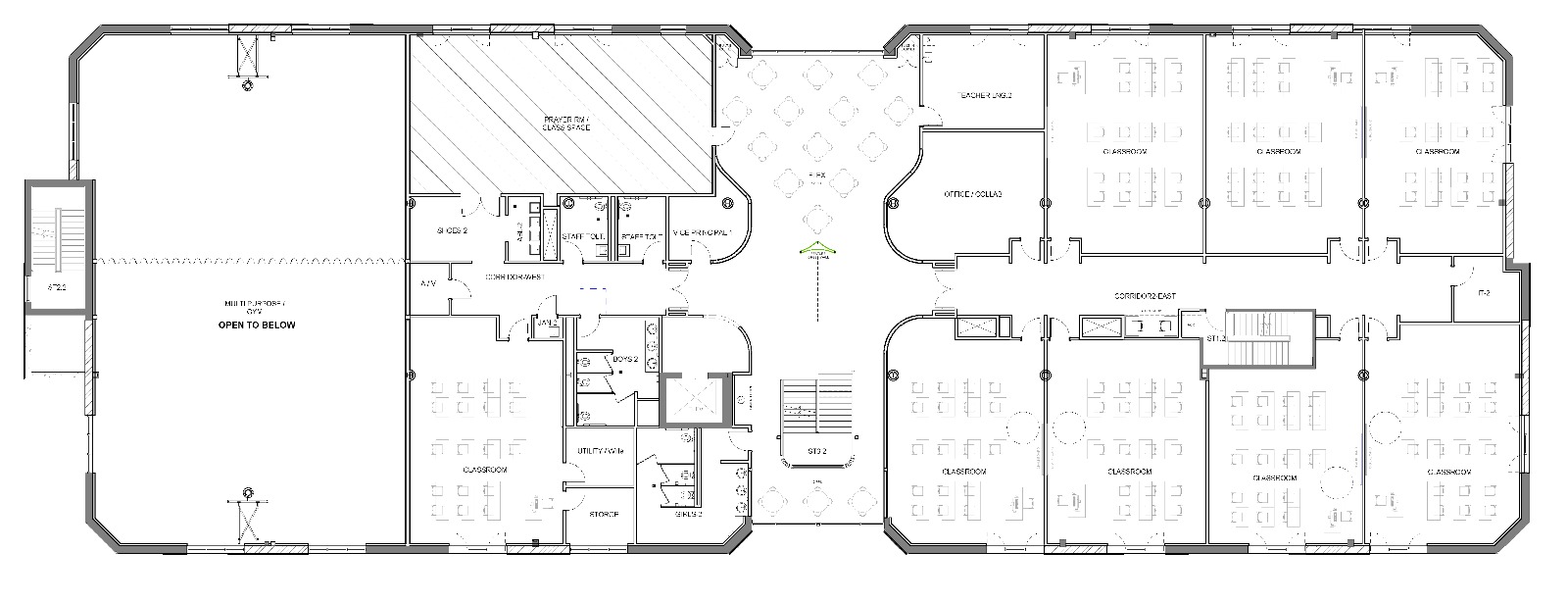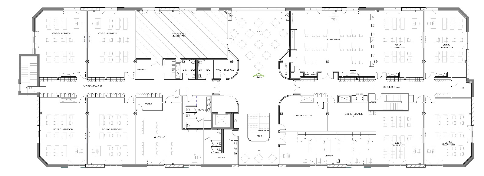 - Each floor has a dedicated flex area for collaborative activities and meals. The second and third floors each have their own prayer and religious studies area. Students only need to leave their floor for recess and gym.